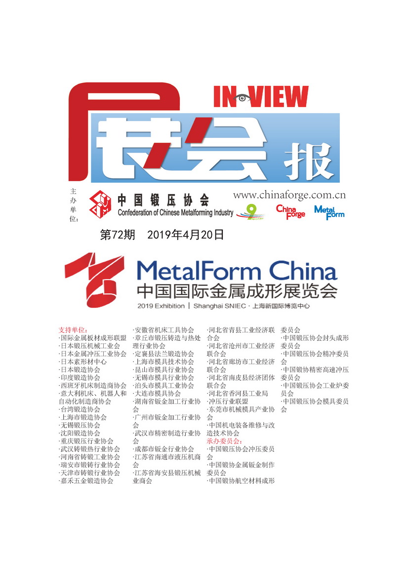 中國鍛壓協(xié)會的品牌展覽會―中國國際金屬成形展單年回到上海舉辦,主題是:“新時代、新技術、新未來”,誠邀貴公司參展!該展包含四個主題展: