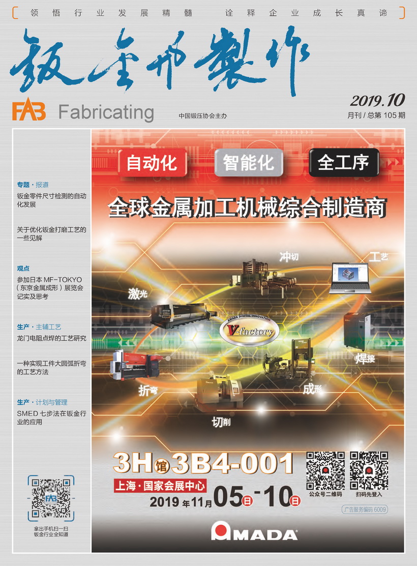 《鈑金與制作》雜志是中國鍛壓協(xié)會主辦的目前國內(nèi)惟一一本面向鈑金制作、管型線材加工行業(yè)的綜合性高端雜志。憑借中國鍛壓協(xié)會多年服務(wù)鈑金和管型線材行業(yè)的優(yōu)勢,努力搭建供應(yīng)商與用戶企業(yè)間的信息平臺,做好政府、高校、科研院所及企業(yè)間溝通的橋梁。