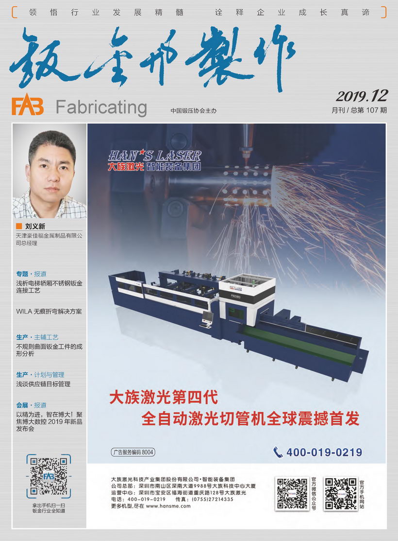 《鈑金與制作》雜志是中國鍛壓協(xié)會(huì)主辦的目前國內(nèi)惟一一本面向鈑金制作、管型線材加工行業(yè)的綜合性高端雜志。憑借中國鍛壓協(xié)會(huì)多年服務(wù)鈑金和管型線材行業(yè)的優(yōu)勢(shì),努力搭建供應(yīng)商與用戶企業(yè)間的信息平臺(tái),做好政府、高校、科研院所及企業(yè)間溝通的橋梁。