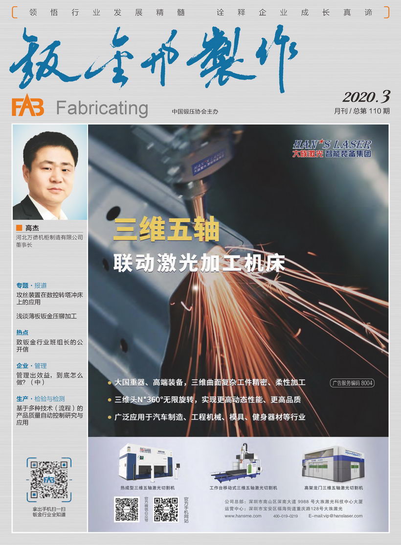 《鈑金與制作》雜志是中國鍛壓協(xié)會(huì)主辦的目前國內(nèi)惟一一本面向鈑金制作、管型線材加工行業(yè)的綜合性高端雜志。憑借中國鍛壓協(xié)會(huì)多年服務(wù)鈑金和管型線材行業(yè)的優(yōu)勢(shì),努力搭建供應(yīng)商與用戶企業(yè)間的信息平臺(tái),做好政府、高校、科研院所及企業(yè)間溝通的橋梁。