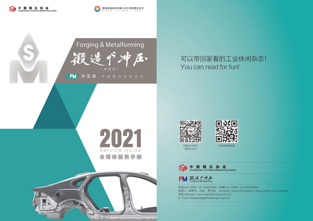FM《鍛造與沖壓》由中國(guó)鍛壓協(xié)會(huì)主辦,是一本以市場(chǎng)需求為導(dǎo)向,集信息、技術(shù)、產(chǎn)品、市場(chǎng)與管理為一體的綜合性高端雜志。月發(fā)行量2.5萬(wàn)冊(cè),采取B2B發(fā)行模式,具有鍛壓行業(yè)針對(duì)性最強(qiáng)、覆蓋有效率最高的讀者群體,是中國(guó)鍛壓行業(yè)的領(lǐng)銜雜志媒體,受到國(guó)內(nèi)外廣泛的認(rèn)可。