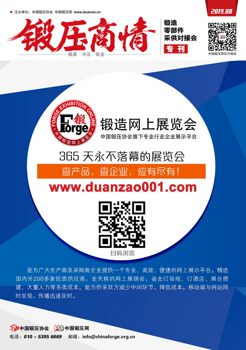 《鍛壓商情》是中國鍛壓網(wǎng)采取網(wǎng)上和網(wǎng)下同步宣傳的方式向全世界采購商介紹行業(yè)內(nèi)的優(yōu)秀生產(chǎn)商,所有宣傳全部為中英文雙語版本。