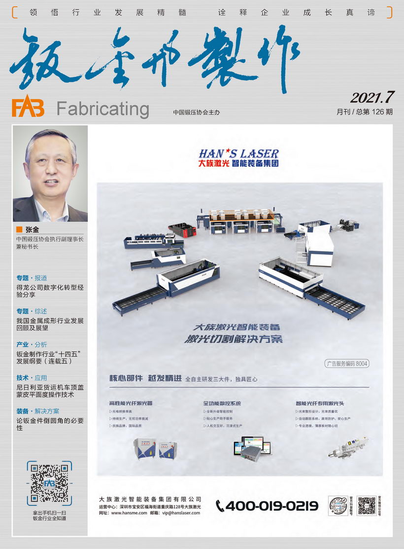 《鈑金與制作》雜志是中國鍛壓協(xié)會(huì)主辦的目前國內(nèi)惟一一本面向鈑金制作、管型線材加工行業(yè)的綜合性高端雜志。憑借中國鍛壓協(xié)會(huì)多年服務(wù)鈑金和管型線材行業(yè)的優(yōu)勢,努力搭建供應(yīng)商與用戶企業(yè)間的信息平臺(tái),做好政府、高校、科研院所及企業(yè)間溝通的橋梁。