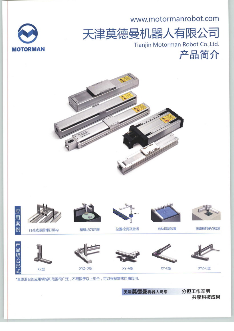 天津莫德曼機器人有限公司成立于二零一一年七月,位于天津市靜海經(jīng)濟技術開發(fā)區(qū)北區(qū)。公司長期專注于工業(yè)機器人產(chǎn)品的科技研發(fā)、生產(chǎn)制造、銷售和應用服務。公司主要產(chǎn)品包括:精密定位平臺;XY直線滑臺;工業(yè)機械手臂;龍門式機械手;自動化傳動原件、直線電機等。