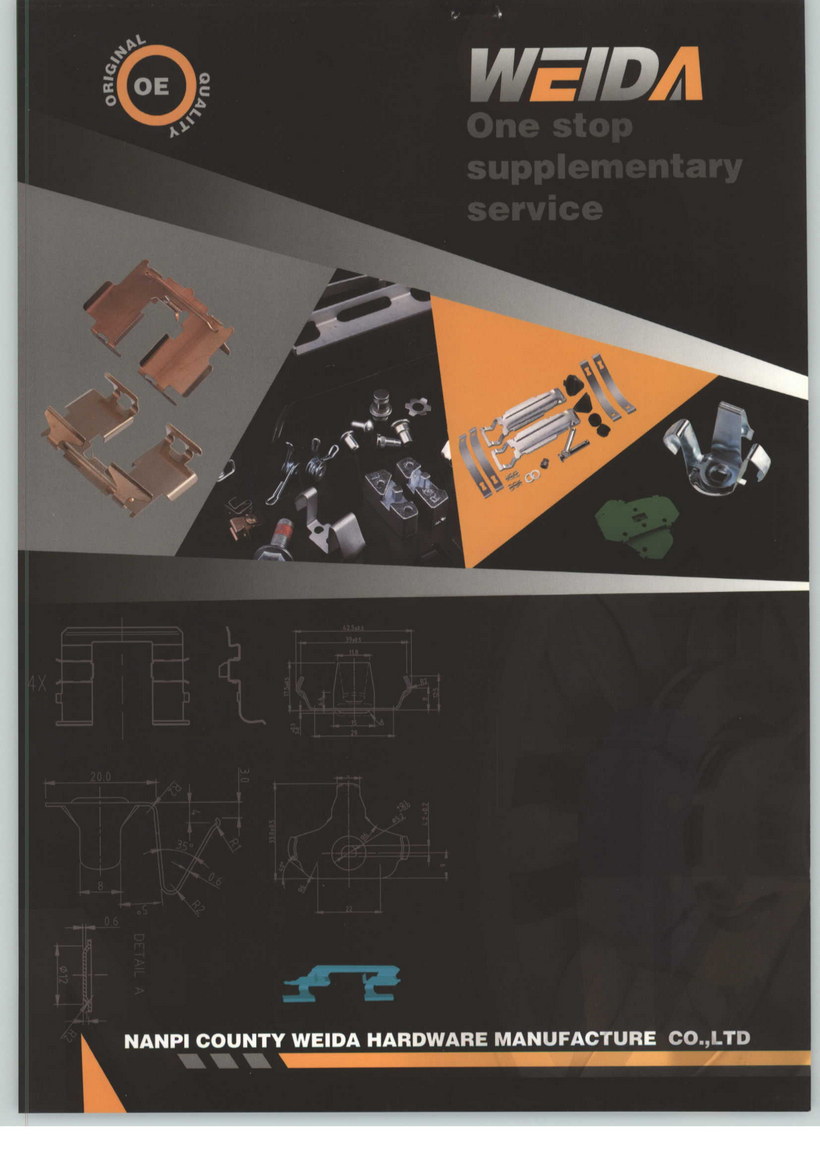 公司從事五金沖壓生產(chǎn)近20年的歷史,注冊(cè)資金1050W元,地理位置優(yōu)越,交通便利,緊鄰104國(guó)道、京滬高鐵、公司至北京215KM、天津113KM、濟(jì)南210KM、青島500KM。出口港口:天津、青島廠房占地面積20000m2員工200多人,營(yíng)業(yè)額7600W,以每年30%遞增。8-400沖床270臺(tái)、100-630T油壓機(jī)25臺(tái)、180T壓鑄機(jī)1臺(tái)、自動(dòng)清洗線一條、1-12MM剪板機(jī)4臺(tái)、線切割15臺(tái)、拋丸機(jī)、車床、磨床、萬(wàn)能銑床、焊等先進(jìn)設(shè)備。產(chǎn)品范圍:以汽車剎車系統(tǒng):鋼背、導(dǎo)向架、卡簧、報(bào)警卡、消音片、大巴修理包、大巴鋼背、拉桿等,產(chǎn)品型號(hào)是內(nèi)國(guó)最齊全企業(yè)之一,基本已覆蓋國(guó)內(nèi)外所有車型,為剎車片廠家提供一站式配套服務(wù)。