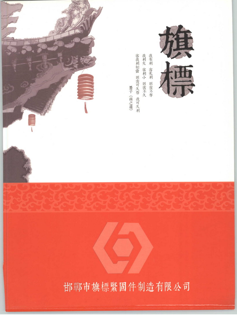 邯鄲市旗標緊固件制造有限公司(一般納稅人企業(yè),自營進出口企業(yè))前身為永年縣強標標準件廠。為永年縣早期專業(yè)制造緊固件的廠商之一,公司引進國內(nèi)先進設備,與優(yōu)質(zhì)線材生產(chǎn)鋼廠簽訂合作備忘錄,高薪聘請國內(nèi)優(yōu)秀技術(shù)人才,專注致力于優(yōu)質(zhì)性價比的緊固件生產(chǎn)。經(jīng)多年發(fā)展在社會各界與政府幫助下逐步形成了“專業(yè)化,自主化,高效化”。在國家大方針“一帶一路”引導下,公司開設了外貿(mào)部,把高性價的緊固件帶給世界各國,為客戶創(chuàng)造更大的利潤,為國家和企業(yè)創(chuàng)造效益是我們今后不惜余力追求的目標。
