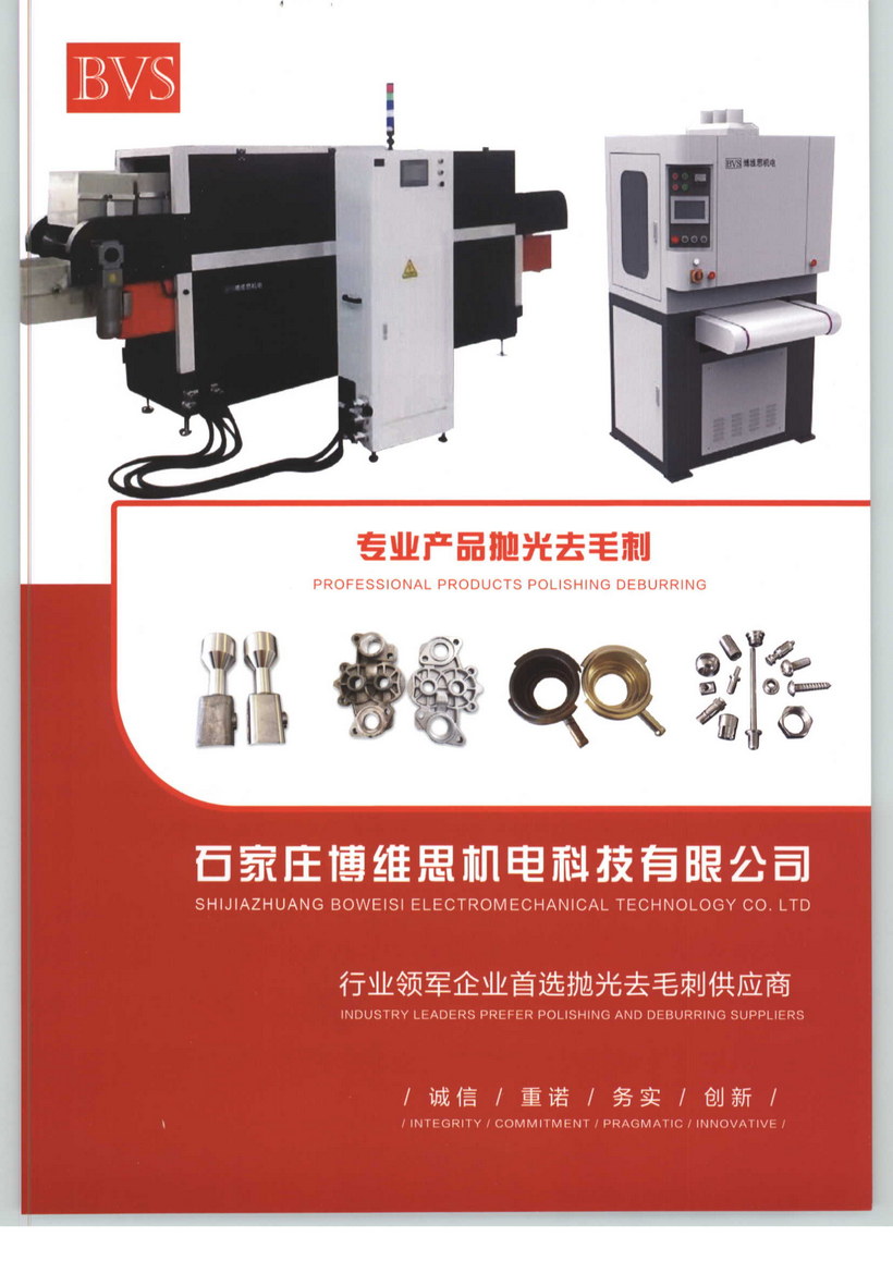 寧波博維思機(jī)電科技有限公司,專致產(chǎn)品去毛刺、產(chǎn)品拋光、產(chǎn)品清洗、自動(dòng)化相關(guān)領(lǐng)域解決方案、主打設(shè)備有平面金屬砂光去毛刺機(jī)、高能磁磁針拋光機(jī)、高能磁磁針研磨去毛刺機(jī)、自動(dòng)清洗機(jī)以及相關(guān)非標(biāo)自動(dòng)化設(shè)備。地處長(zhǎng)三角內(nèi)最具活力的工業(yè)明星城市之一浙江省寧波市。位于浙江省寧波鄞州區(qū),距離寧波國(guó)際機(jī)場(chǎng)5公里,港口15公里,緊靠甬金高速入口處,交通十分便利,工業(yè)發(fā)達(dá)。我公司是一家專業(yè)從事高品質(zhì)去毛刺機(jī)、拋光機(jī)、清洗機(jī)、自動(dòng)化設(shè)備等研發(fā)生產(chǎn)及制定相關(guān)解決方案的企業(yè),經(jīng)過(guò)全體博維思人幾年共同努力,公司現(xiàn)已形成年產(chǎn)銷各類高品質(zhì)自動(dòng)拋光去毛刺設(shè)備近百臺(tái),年服務(wù)包括世界500強(qiáng)在內(nèi)的近百家企業(yè)及科研院校的能力。其中公司擁有自主知識(shí)產(chǎn)權(quán)的主打產(chǎn)品《博思》系列高品質(zhì)自動(dòng)磁針拋光機(jī)、磁針研磨機(jī)、自動(dòng)平面鈑金砂光去毛刺機(jī)具有品質(zhì)優(yōu)異、高效便捷、性能穩(wěn)定、使用壽命長(zhǎng)、性價(jià)比高等特性,被廣泛應(yīng)用于包括世界五百?gòu)?qiáng)在內(nèi)的五金機(jī)加工業(yè)、壓鑄業(yè)、澆鑄業(yè)、精密電子業(yè)、汽配行業(yè)、精密五金業(yè)等行業(yè)企業(yè),投放市場(chǎng)后受到用戶的一致好評(píng),近三年用戶滿意度均在98%以上。