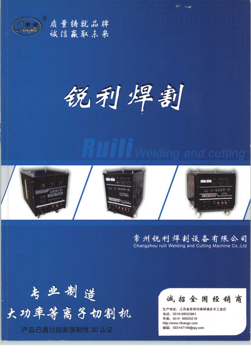 常州銳利焊割設備有限公司(原常州精藝焊割成套設備廠),位于滬寧高速和沿江高速交匯處。歷經(jīng)十年的努力與發(fā)展現(xiàn)已成為國內(nèi)等離子切割機制造企業(yè)中的佼佼者,其產(chǎn)品質(zhì)量與服務均得到了廣大用戶的肯定與信賴。公司是具有雄厚的制造能力及完善的檢測設備。產(chǎn)品工藝先進,性能優(yōu)良,結構合理,造型新穎。所有產(chǎn)品通過國家權威機構強制性安全認證CCC。