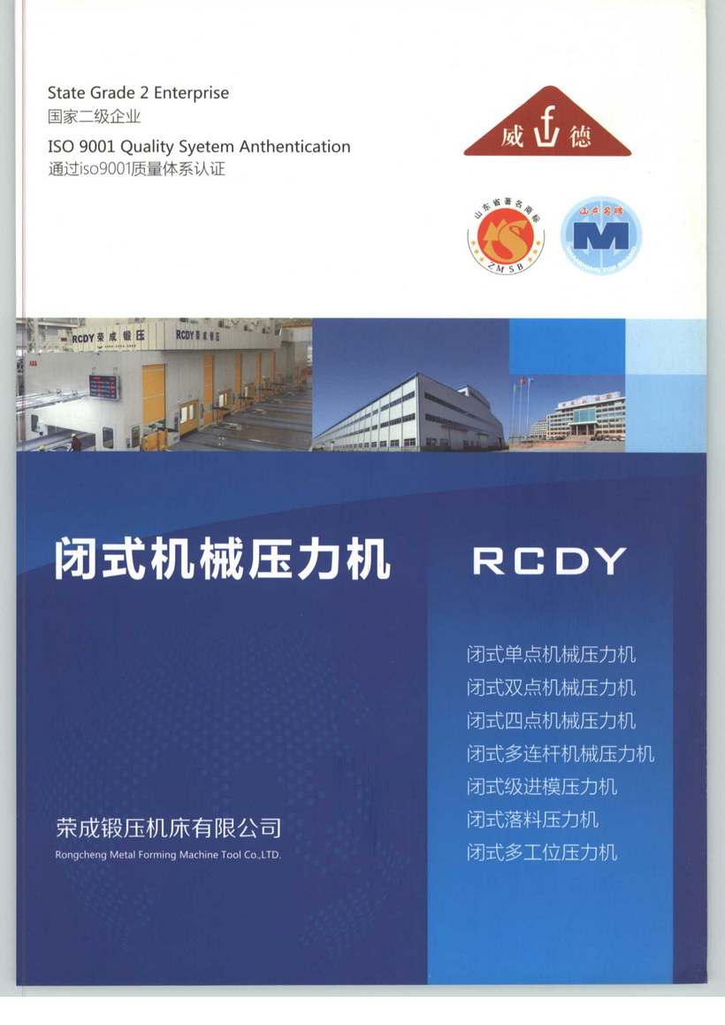 榮成鍛壓機床有限公司始建于1958年,是生產(chǎn)鍛壓設(shè)備的專業(yè)工廠,國家二級企業(yè)。工廠占地27萬平方米,其中廠房等建筑面積12.8萬平方米;共有員工1000余人,其中工程技術(shù)人員與質(zhì)量專業(yè)人員132人;擁有主要設(shè)備400余臺(套),其中精、大、稀設(shè)備60余臺(套)。公司于2000年即通過了質(zhì)量、職業(yè)健康安全和環(huán)境三大管理體系認(rèn)證。連續(xù)27年被評為山東省“守合同、重信用”企業(yè)。公司先后被省市相關(guān)部門授予省級先進(jìn)企業(yè)、山東省認(rèn)定企業(yè)技術(shù)中心、山東省高新技術(shù)企業(yè)、山東省塑性成型加工機械工程技術(shù)研究中心、AAA標(biāo)準(zhǔn)化良好行為企業(yè)、省計量保證確認(rèn)合格企業(yè)、威海市鍛壓機械工程技術(shù)研究中心、納稅先進(jìn)企業(yè)、五星級職工之家等榮譽稱號,“威德”商標(biāo)是山東省著名商標(biāo),“威德”牌壓力機是山東省名牌產(chǎn)品。公司現(xiàn)可生產(chǎn)開式全系列,閉式包括單點、雙點、四點、多連桿、多工位、級進(jìn)模等8大系列300多個品種的鍛壓設(shè)備,技術(shù)水平都達(dá)到了當(dāng)今國內(nèi)先進(jìn)或領(lǐng)先水平,產(chǎn)品在國內(nèi)外市場享有盛譽。公司現(xiàn)為國內(nèi)主要鍛壓設(shè)備制造企業(yè)之一。榮成鍛壓機床有限公司始終堅持以打造國內(nèi)一流的鍛壓產(chǎn)品制造企業(yè)為己任,堅持以產(chǎn)品質(zhì)量求生存、以高新技術(shù)促發(fā)展的方針,不斷引進(jìn)吸收國內(nèi)外先進(jìn)技術(shù),并予以發(fā)展創(chuàng)新,采用最先進(jìn)的工藝與檢測手段,生產(chǎn)高科技產(chǎn)品。