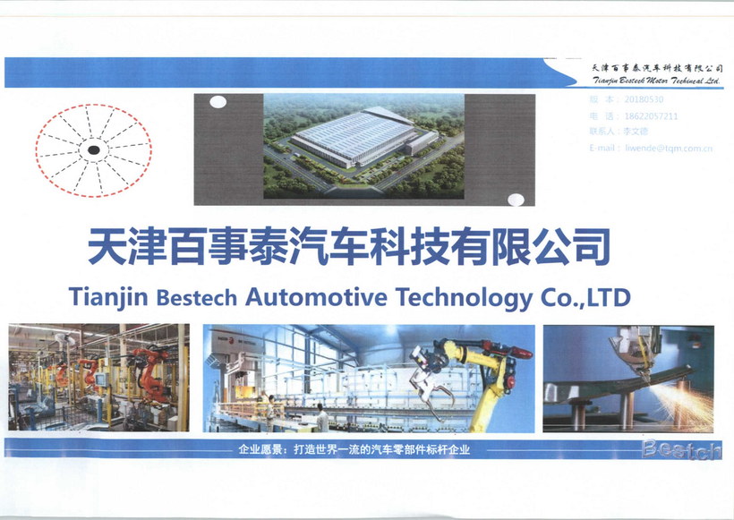 天津百事泰汽車科技有限公司,交通便利,位于天津空港經(jīng)濟(jì)區(qū),距離天津機(jī)場(chǎng)3公里,緊鄰京津塘高速,注冊(cè)資金5000萬(wàn)元;占地面積5800平方米,一期總設(shè)備投資3500萬(wàn)元,主營(yíng)業(yè)務(wù)為熱沖壓零件生產(chǎn)、產(chǎn)品研發(fā)。