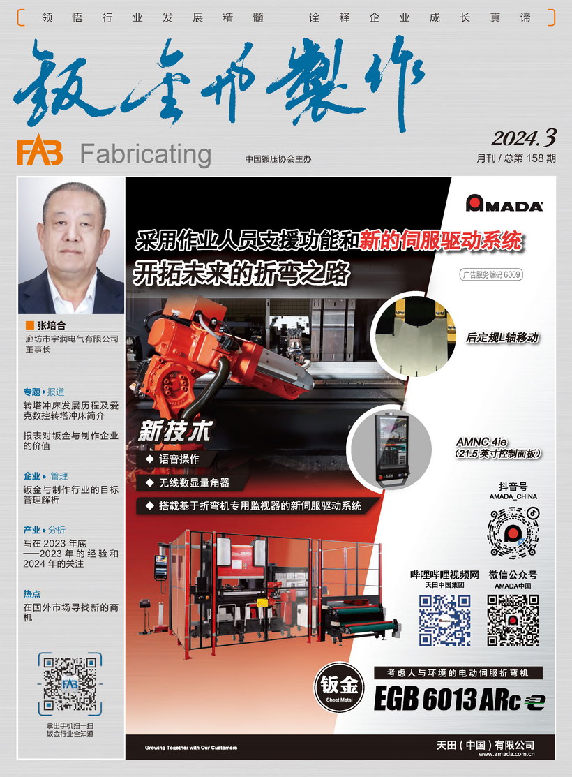 《鈑金與制作》雜志是中國鍛壓協(xié)會主辦的目前國內(nèi)惟一一本面向鈑金制作、管型線材加工行業(yè)的綜合性高端雜志。憑借中國鍛壓協(xié)會多年服務(wù)鈑金和管型線材行業(yè)的優(yōu)勢,努力搭建供應(yīng)商與用戶企業(yè)間的信息平臺,做好政府、高校、科研院所及企業(yè)間溝通的橋梁。