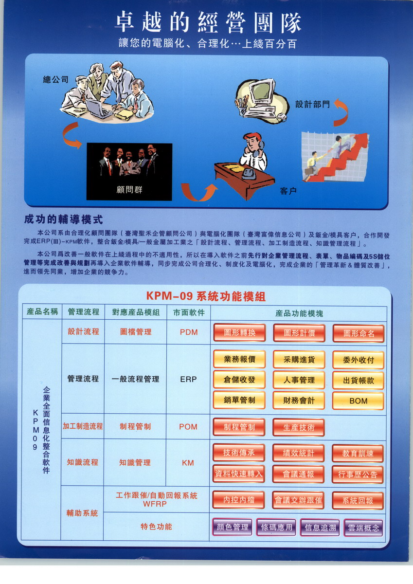 東莞百兆軟件科技有限公司主要經(jīng)營“模具管理軟件,ERP軟件,PDM軟件,KM軟件,制程管理軟件,鈑金管理軟件,合理化,企業(yè)管理咨詢,”等產(chǎn)品。公司尊崇“踏實、拼搏、責任的企業(yè)精神,并以誠信、共贏、開創(chuàng)經(jīng)營理念,創(chuàng)造良好的企業(yè)環(huán)境,以全新的管理模式,完善的技術(shù),周到的服務,卓越的品質(zhì)為生存根本,我們始終堅持用戶至上 用心服務于客戶,堅持用自己的服務去打動客戶。