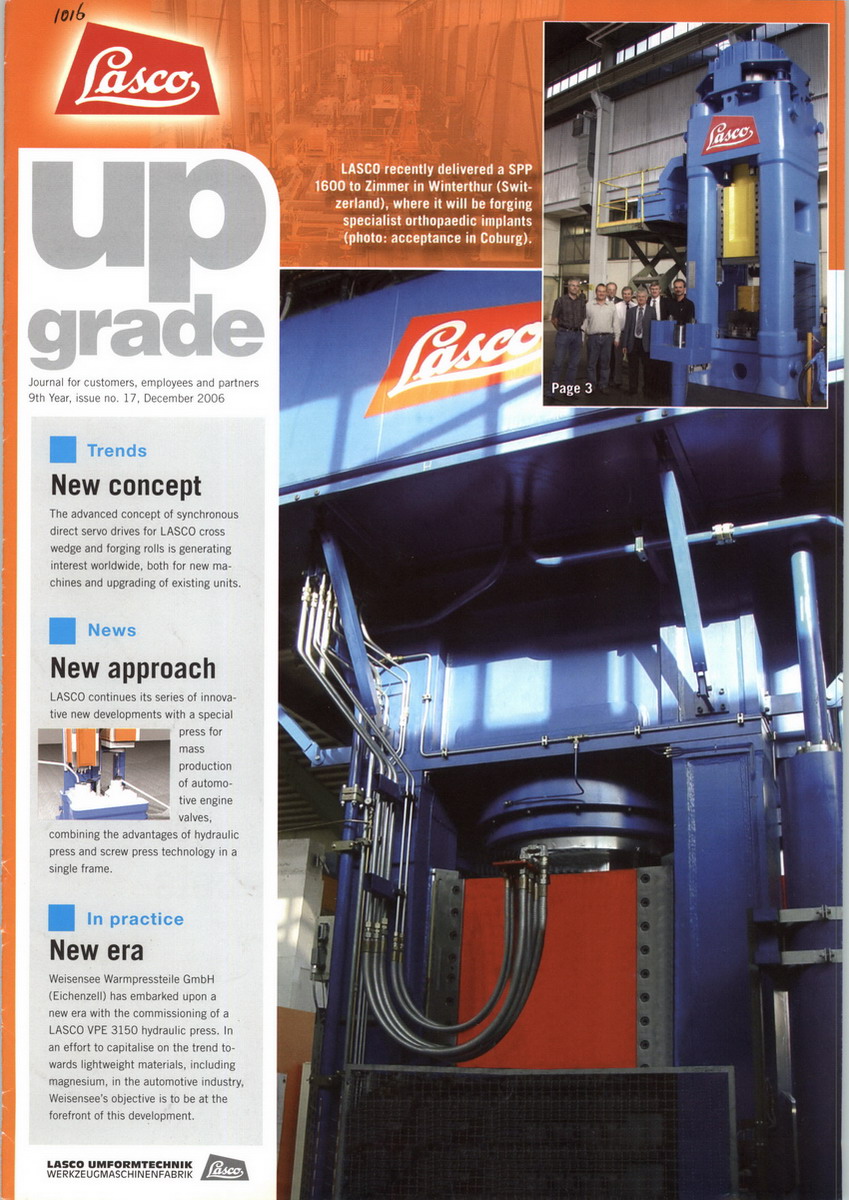 自從Langenstein和Schemann 1863年在德國科堡創(chuàng)立LASCO開始。LASCO就致力于在軍事、航天航空、汽車、船舶、化工、醫(yī)療、采礦和建筑工業(yè)領(lǐng)域為用戶提供最具現(xiàn)代化、最經(jīng)濟(jì)的鍛壓及成型設(shè)備生產(chǎn)線,LASCO產(chǎn)品以其高效率、高質(zhì)量和不斷創(chuàng)新而久負(fù)盛名。LASCO一向遵循市場的要求,不僅專注于鍛造及板材成型領(lǐng)域,LASCO設(shè)備在粉末冶金等特殊工業(yè)也廣泛應(yīng)用。同時,在建筑新型墻體材料領(lǐng)域,LASCO設(shè)備及生產(chǎn)線也早已得到客戶的廣泛認(rèn)可。
