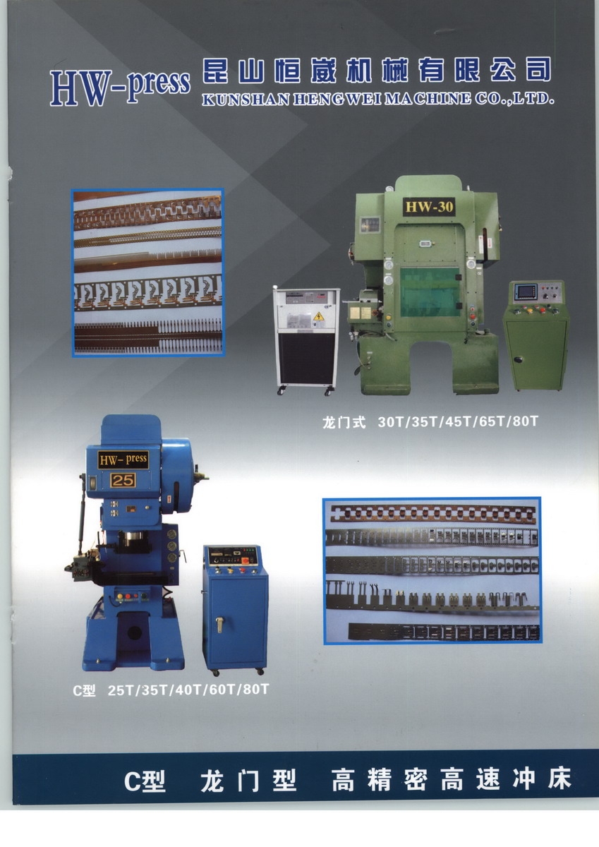 昆山恒崴機(jī)械有限公司經(jīng)過多年的拼搏發(fā)展,現(xiàn)已擁有現(xiàn)代化生產(chǎn)設(shè)備和國(guó)際一流的技術(shù)力量,是一家集研發(fā)、制造、銷售、安裝、維修服務(wù)于一體的沖床生產(chǎn)商,主要生產(chǎn)C型沖床、H型沖床、高精密強(qiáng)力鋼架沖床、超高精密肘節(jié)式?jīng)_床,公司可按客戶需要設(shè)計(jì)制造沖床周邊設(shè)備,可完成從工藝流程、設(shè)備選型、生產(chǎn)制造、安裝調(diào)試、人員培訓(xùn)等一條龍服務(wù)。為滿足客戶所需,公司目前擁有江蘇、浙江、東莞等幾大生產(chǎn)基地,辦事處遍布全國(guó),產(chǎn)品并且遠(yuǎn)銷海內(nèi)外市場(chǎng)。