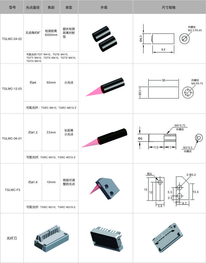 還有對(duì)射光纖用的TGLMC-04-02、和M6光纖用的TGLMC-12-03等