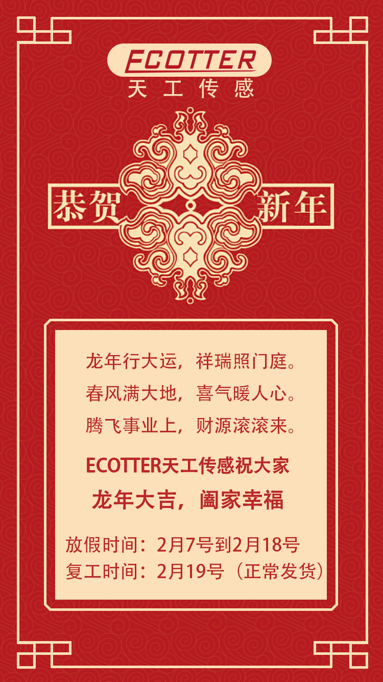 【恭賀新春】ECOTTER春節(jié)放假時(shí)間2月7號(hào)至18號(hào),預(yù)祝大家新春快樂!
