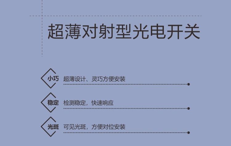 這款光電開關(guān)尺寸小巧,機(jī)身厚度比較薄為5毫米左右只需些許空間,即可安裝。配備雙色指示燈,可視化了解產(chǎn)品工作狀態(tài)。