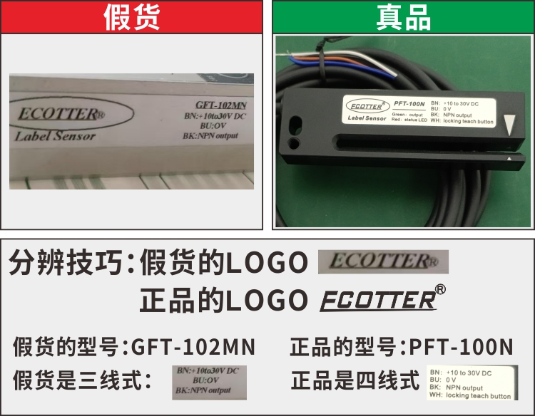 這里我們將舉例教大家分辨ECOTTER天工傳感的正品和外部冒充的假貨,讓消費者購買到正品,也提醒假冒產(chǎn)品制售人員立即改正錯誤,停止不良行為。