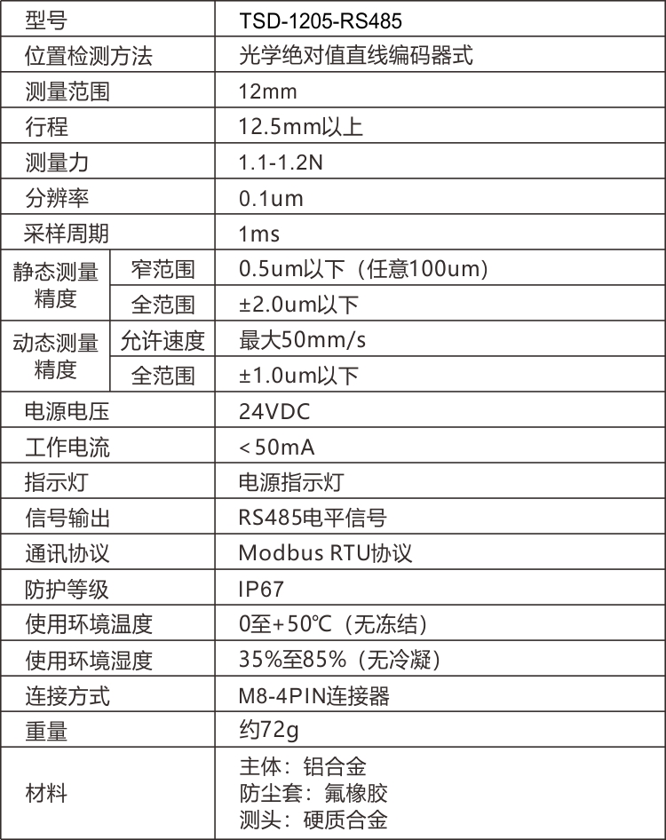 ECOTTER接觸位移傳感器TSD系列,通過光學(xué)絕對值直線編碼器原理,使傳感器具備高分辨率,不產(chǎn)生累積誤差,不產(chǎn)生失步。支持串口通訊,多種量程規(guī)格可選。可測量厚度、距離、直徑、偏移度、平整度等。