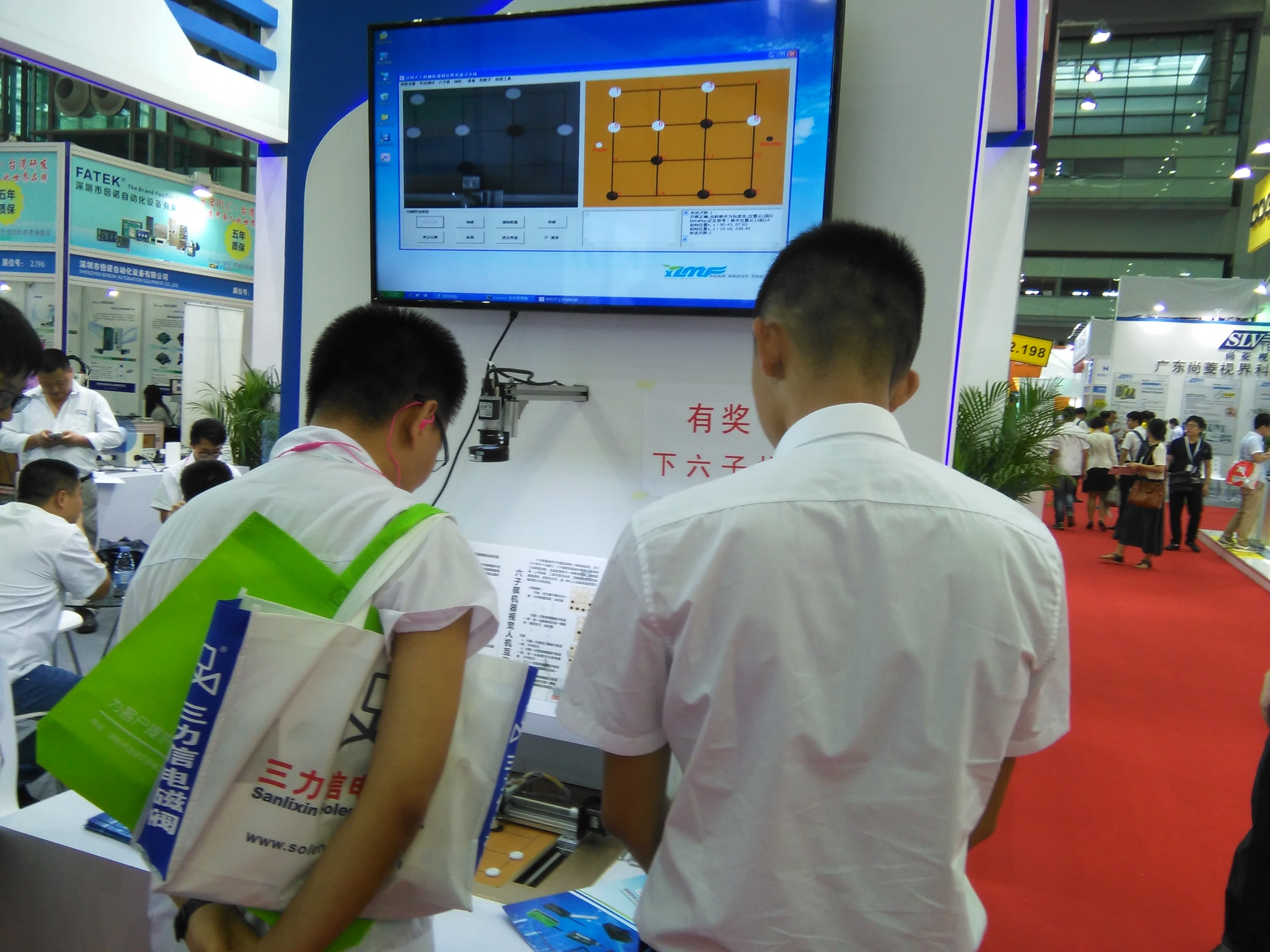 機(jī)器視覺六子棋人機(jī)互動(dòng)展示,基于機(jī)器視覺技術(shù)實(shí)現(xiàn)棋局自動(dòng)識(shí)別、棋子自動(dòng)定位以及棋子身份判別,并自動(dòng)完成棋子挪動(dòng)實(shí)現(xiàn)自然的人機(jī)交互功能。讓前來參觀的人們可以不僅了解到相關(guān)產(chǎn)品,還能體驗(yàn)到行棋的樂趣。