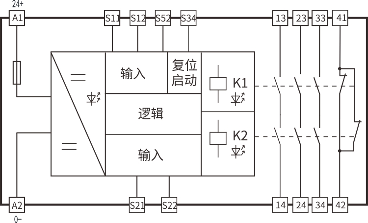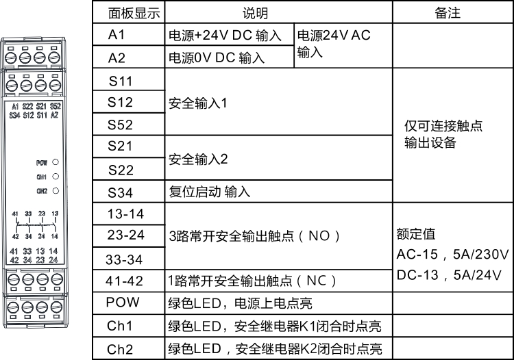 SRS-226-2N/P-3NO1NC是一款適用于具有開關量的安全產(chǎn)品輸入,具有3路常開(NO)安全輸出觸點和1路常閉(NC)輔助輸出觸點的安全繼電器。它可選擇單/雙通道操作,手動/自動復位。