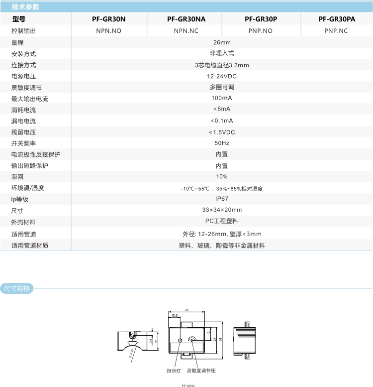 電容式液位傳感器靈敏度可調(diào),可以檢測不同成分的液體,也可以通過調(diào)整靈敏度解決少量液體掛壁引起的誤檢。