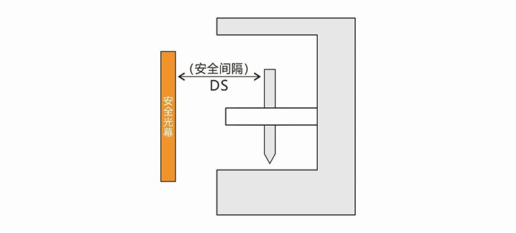 安全間隔:是指光幕至工作危險(xiǎn)區(qū)--模具刃口之間的最短間隔,即從手遮擋光幕的位置開始到達(dá)危險(xiǎn)邊界之前,能夠使滑塊停止所需要的間隔。安全間隔是確保安全光柵實(shí)現(xiàn)保護(hù)功能的必要條件之一,必須正確計(jì)算安全間隔!其計(jì)算方法應(yīng)根據(jù)壓力機(jī)制動方式而定。安全間隔的距離應(yīng)當(dāng)按照J(rèn)B3350-93中第11.5條的規(guī)定計(jì)算: