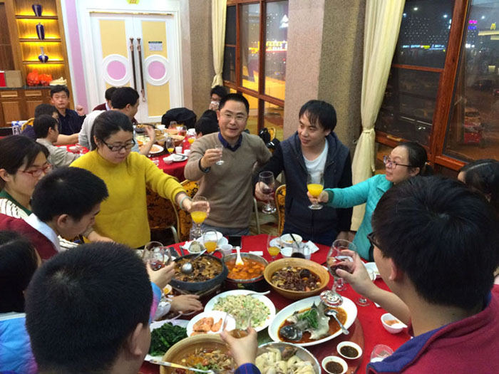 晚會(huì),開始楊總就為我們總結(jié)過去,展望未來,同時(shí)帶領(lǐng)我們?yōu)榱颂旃み@個(gè)大家庭的親情、友情、恩情一起舉杯歡飲。