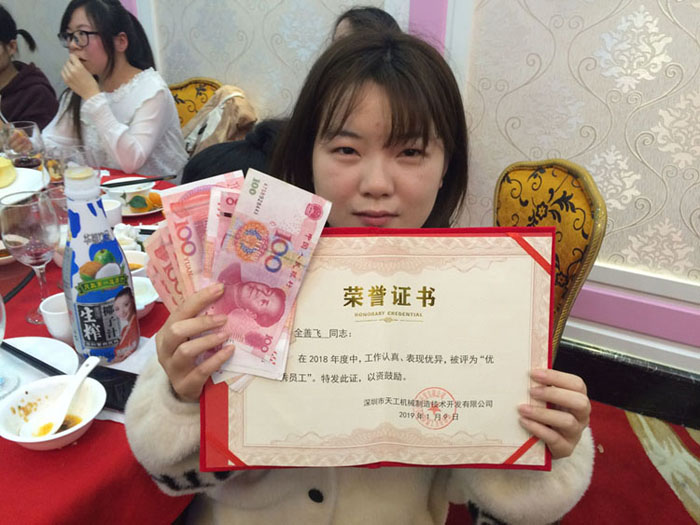最后,我們?yōu)楫?dāng)晚的幸運(yùn)兒表示祝賀,為優(yōu)秀員工表示崇高的敬意。2018已經(jīng)結(jié)束,2019才剛剛開始,讓我們天工的家人們一起乘風(fēng)破浪、披荊斬棘,把2019裝飾成一個(gè)更美好的明天。天工機(jī)械加油,2019加油!