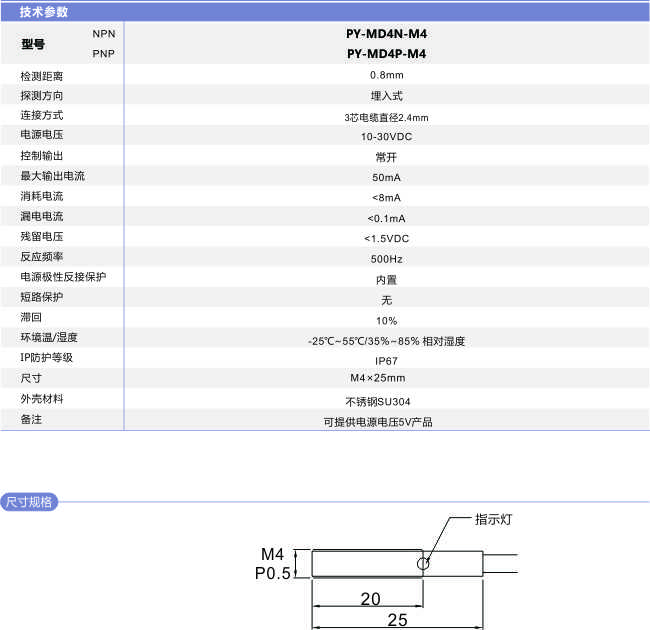 首頁 > 產(chǎn)品中心 >>傳 感 器 >> 接近開關(guān) >> M4 圓柱型接近開關(guān)PY-MD4-M4