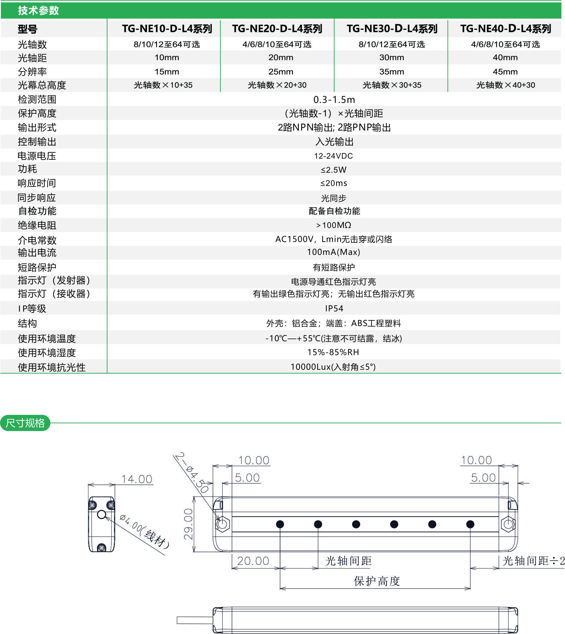 四級(jí)安全光幕超薄型TG-NE-D-L4正面對(duì)射