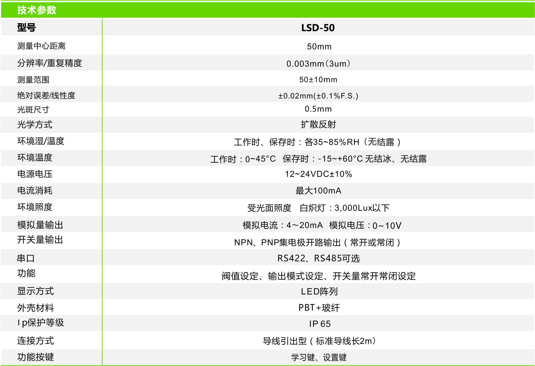 首頁 > 產(chǎn)品中心 >>傳 感 器 >> 激光位移傳感器 >> 激光位移傳感器 LSD-50