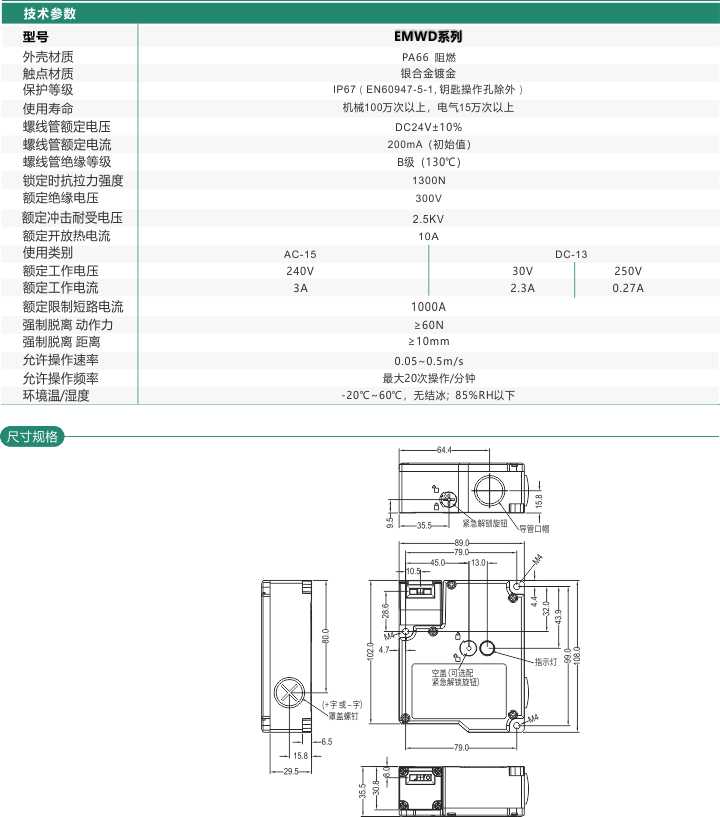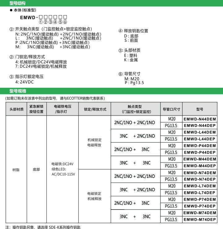 安全門開關(guān) 電磁式 六組觸點 EMWD 系列