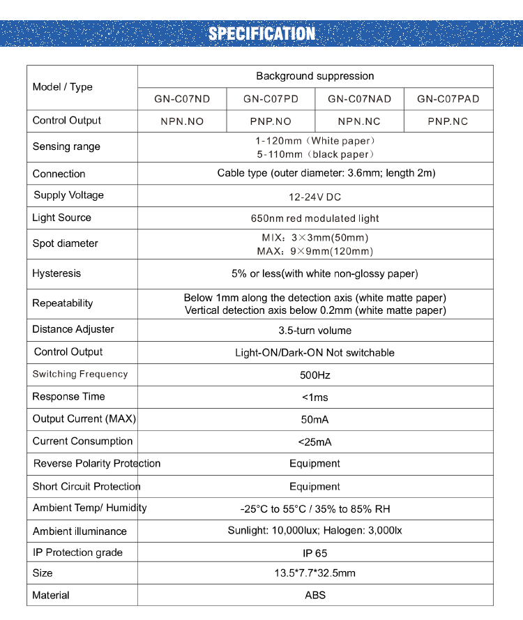 首頁 > 產(chǎn)品中心 >>Sensors >> Photoelectric Sensor >> Small BGS sensor GN-C07